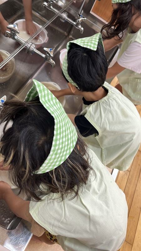 5歳児は午後の活動の時間にみんなのご飯を用意してくれました。