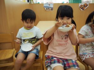 口の周りにホイップを沢山つけて満面の笑みの子どもたち♪