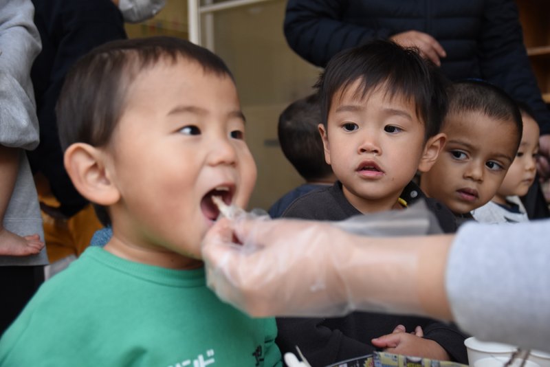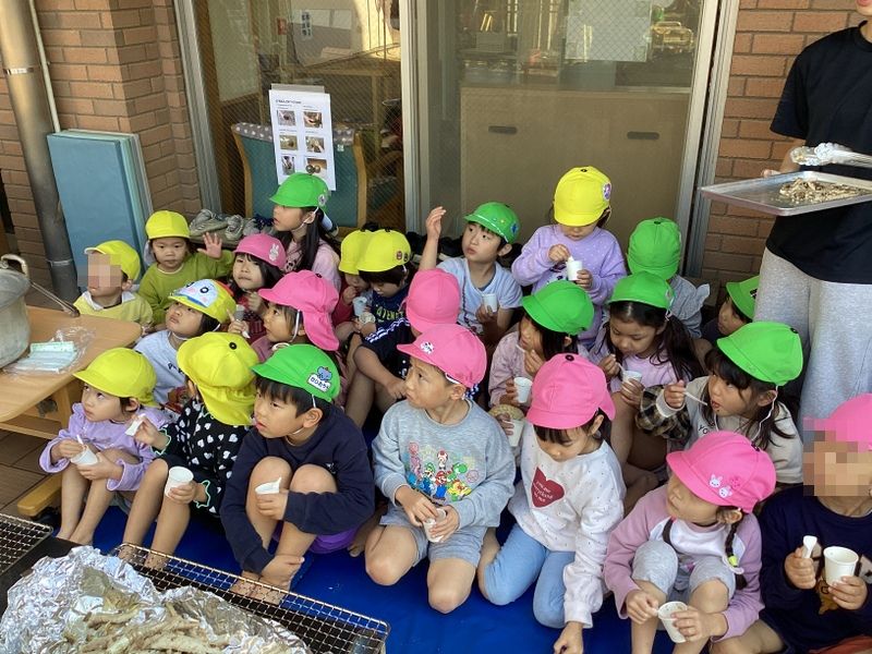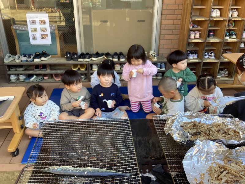 やまと保育園では、毎年秋になると園庭で木炭を使ってサンマを焼いて少しずつ食べます🐟