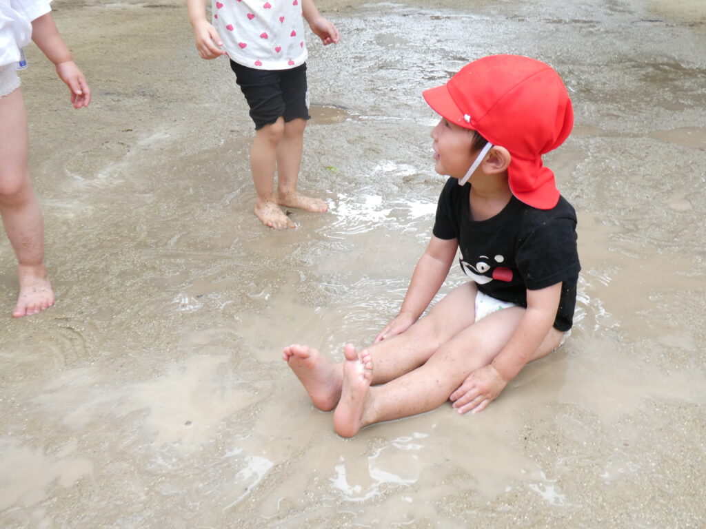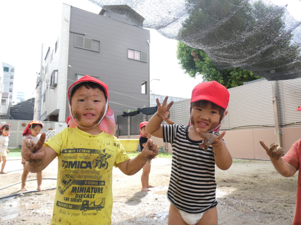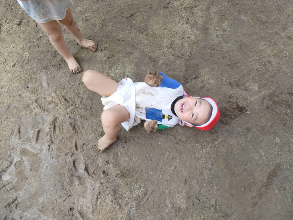 ひさしぶりのどろんこ遊び♪ 子どもたちは大はしゃぎで、どろどろになるのもへっちゃらでした!