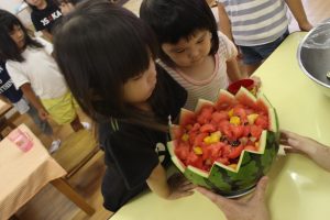 夏のくだもの『すいか』を使って、みんなで楽しみました。