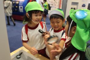 「暗くなるのかな~?」と少しドキドキの子どもたちでしたが、館内のいろいろな物を、触ってみたり、