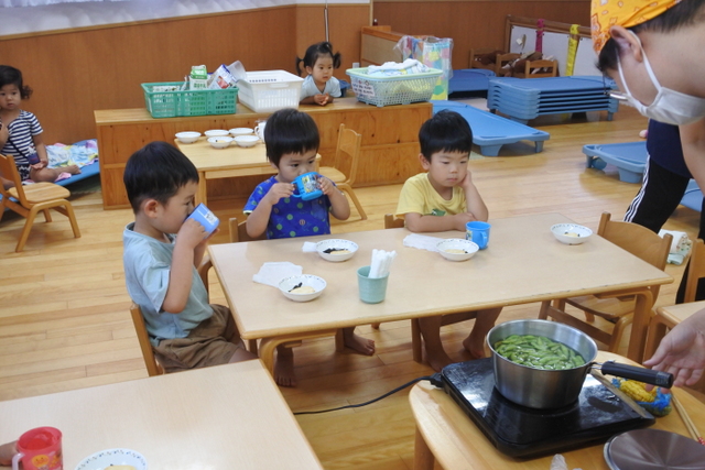 うさぎ組は枝豆を目の前で茹でてもらったよ♪