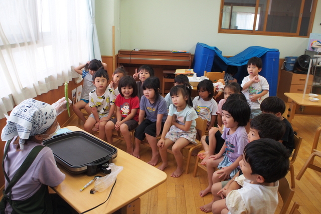 くま組は目の前でトウモロコシを焼いてもらったよ♪