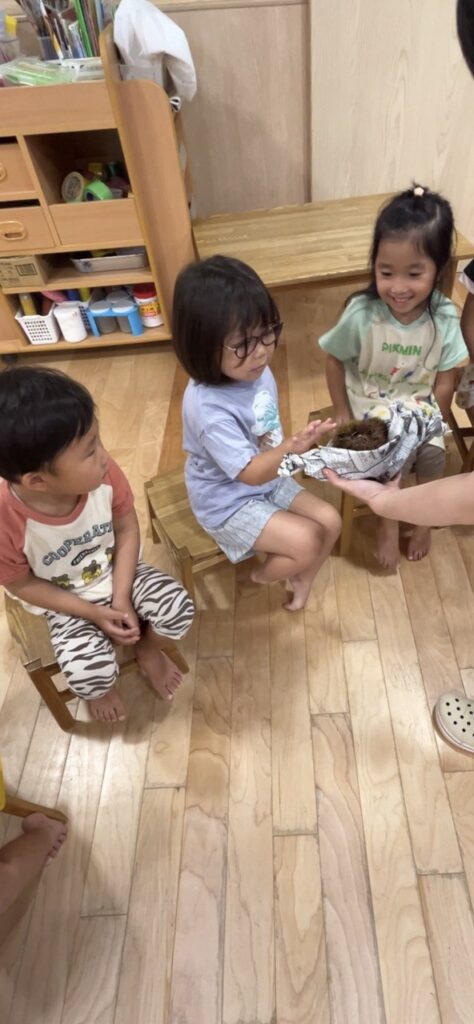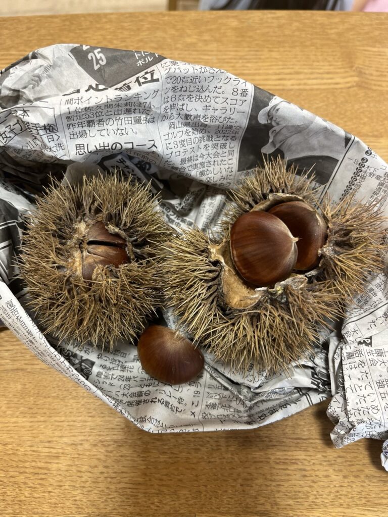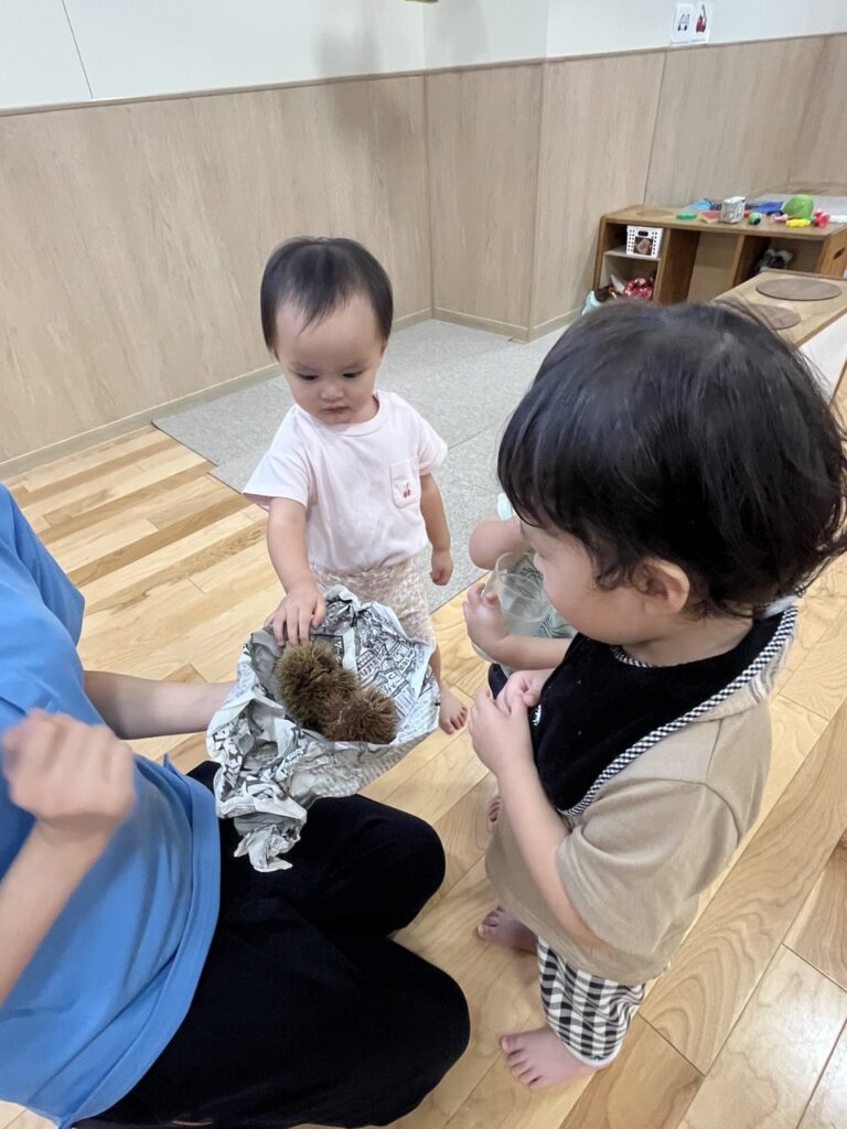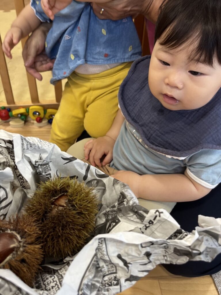 トゲトゲの栗に、子どもたちは興味津々。
