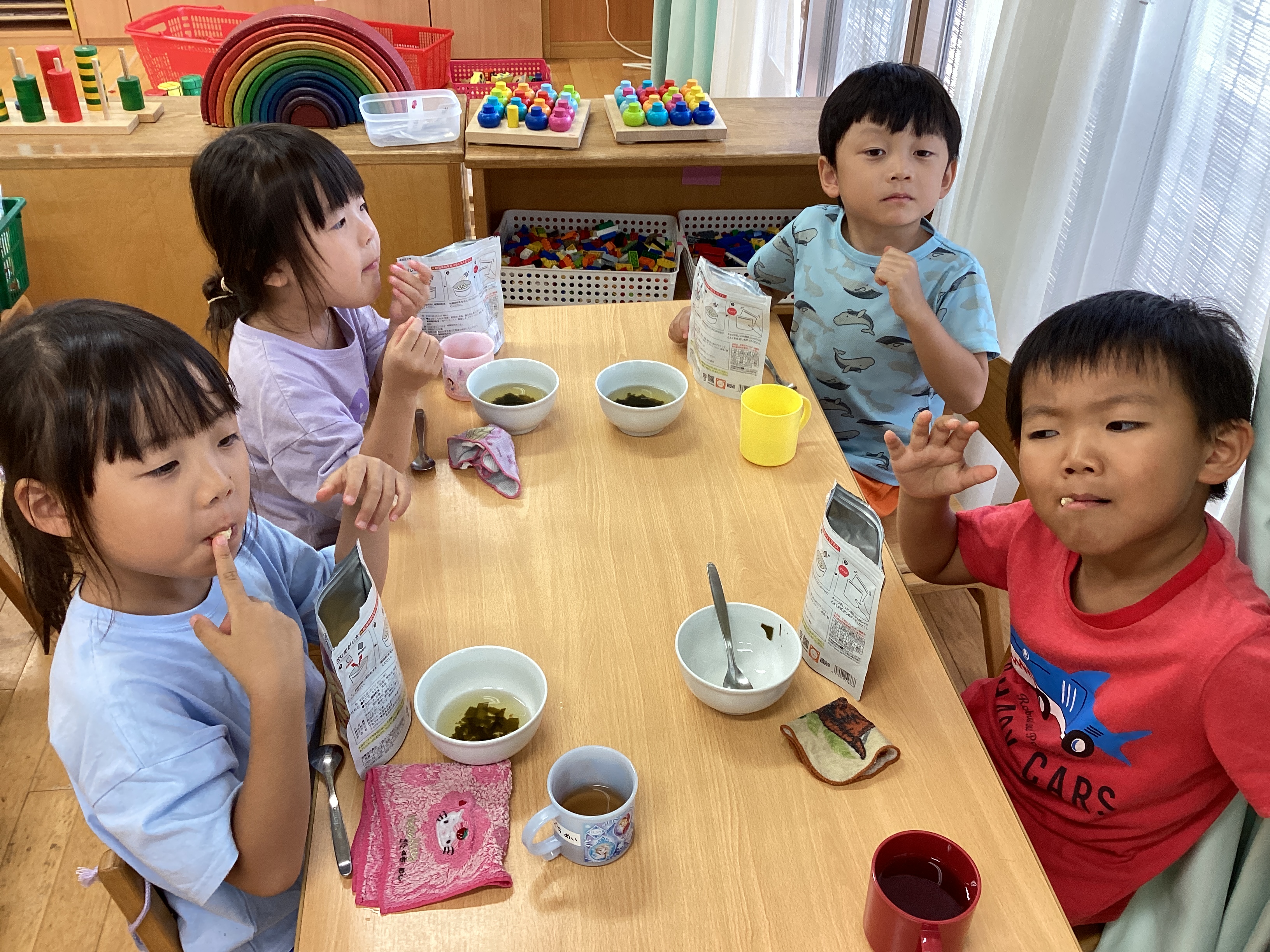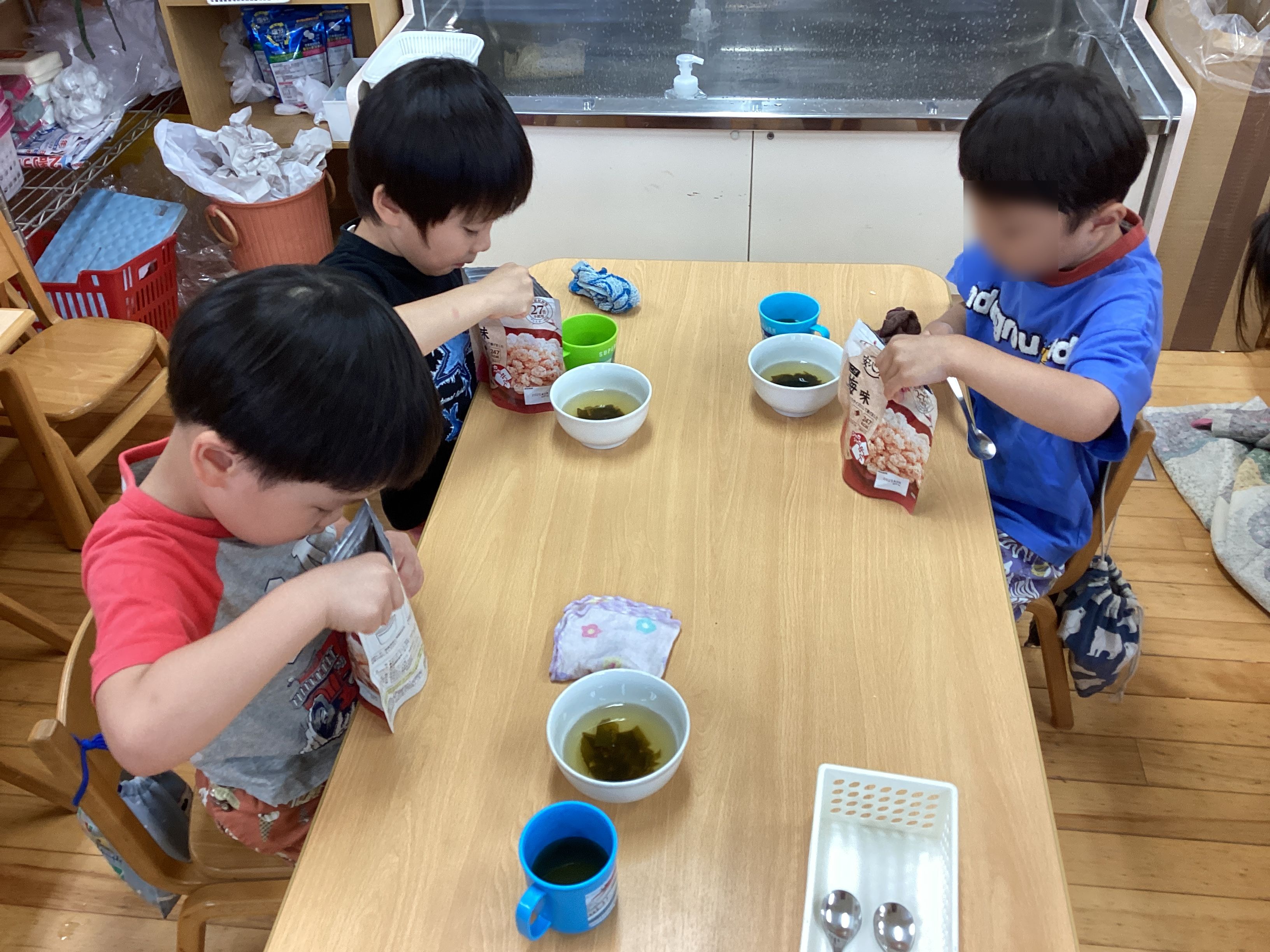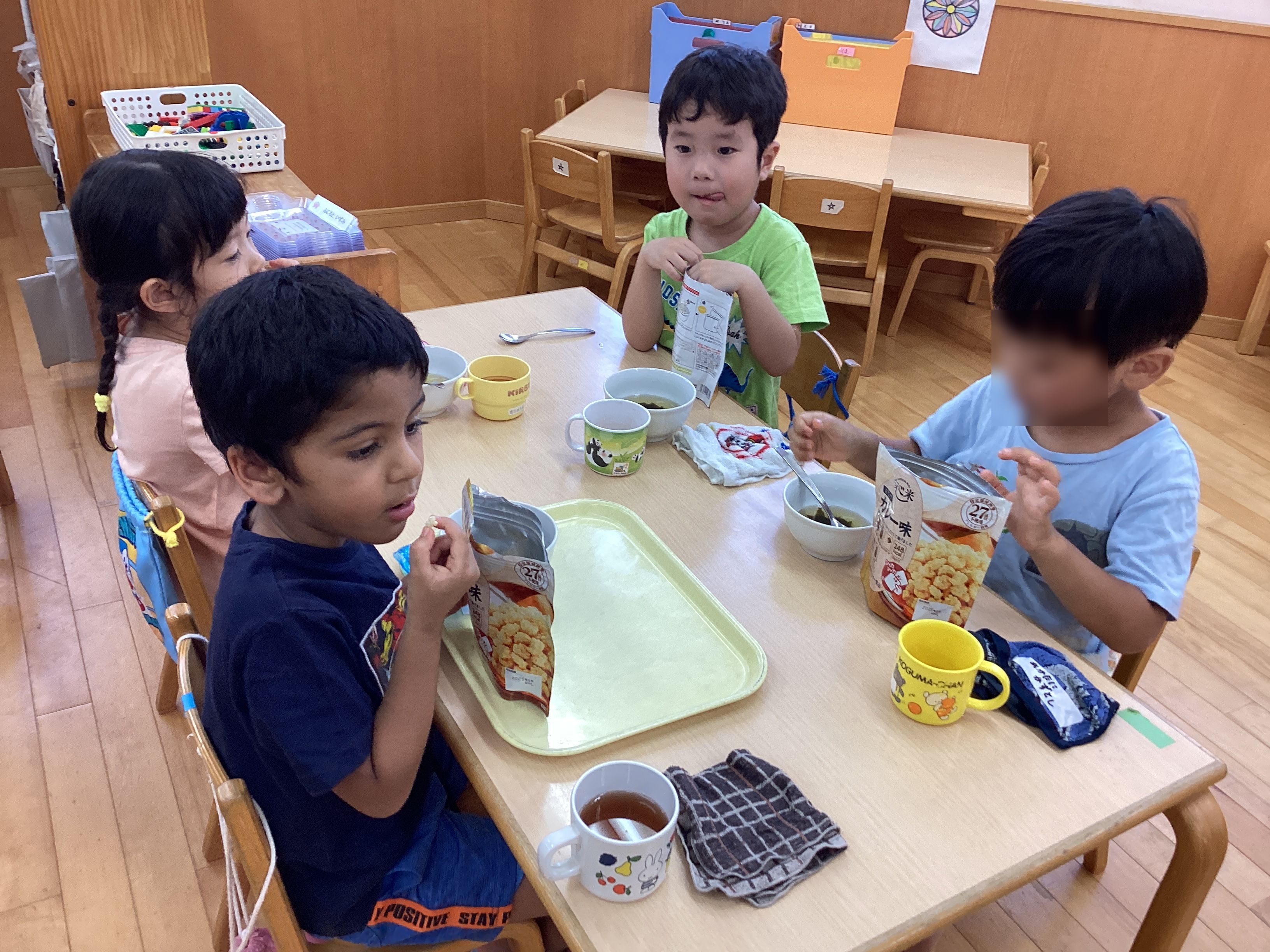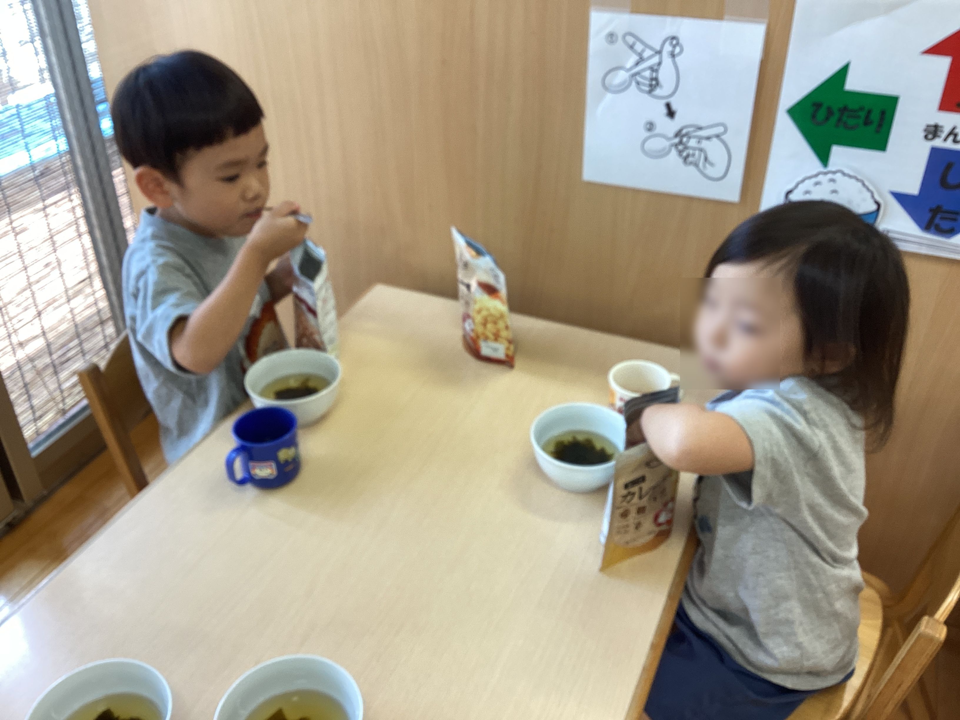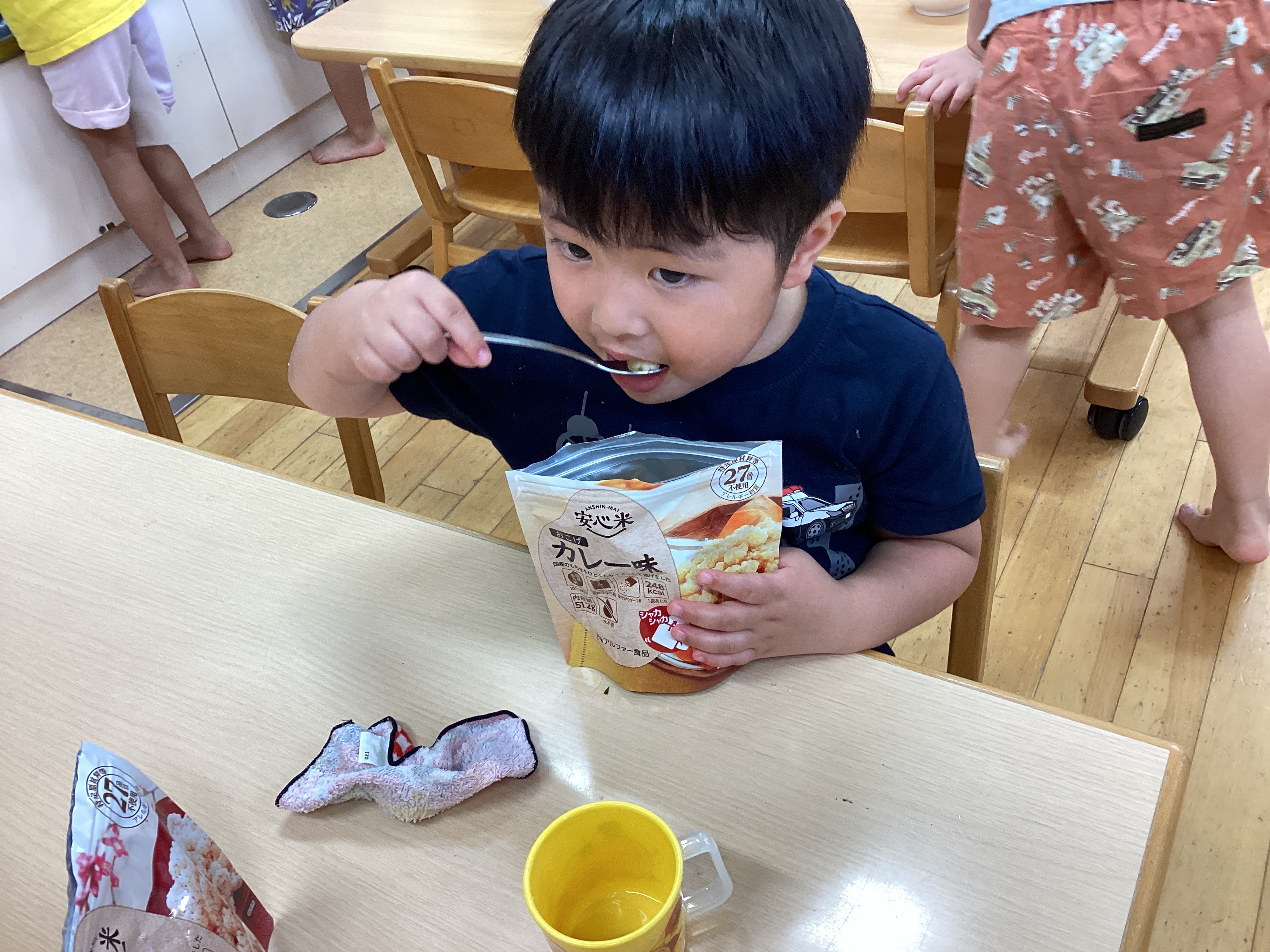 子どもたちはまだそのような経験はないですが、「いざ」というときのために、やまと保育園では年1回防災食体験を行なっています。